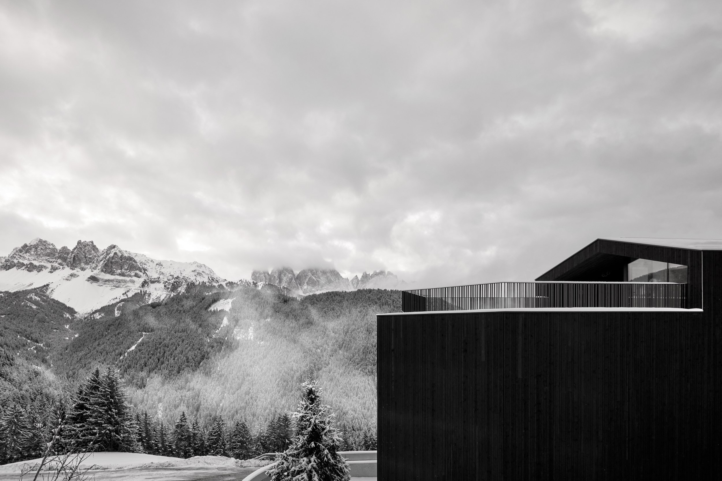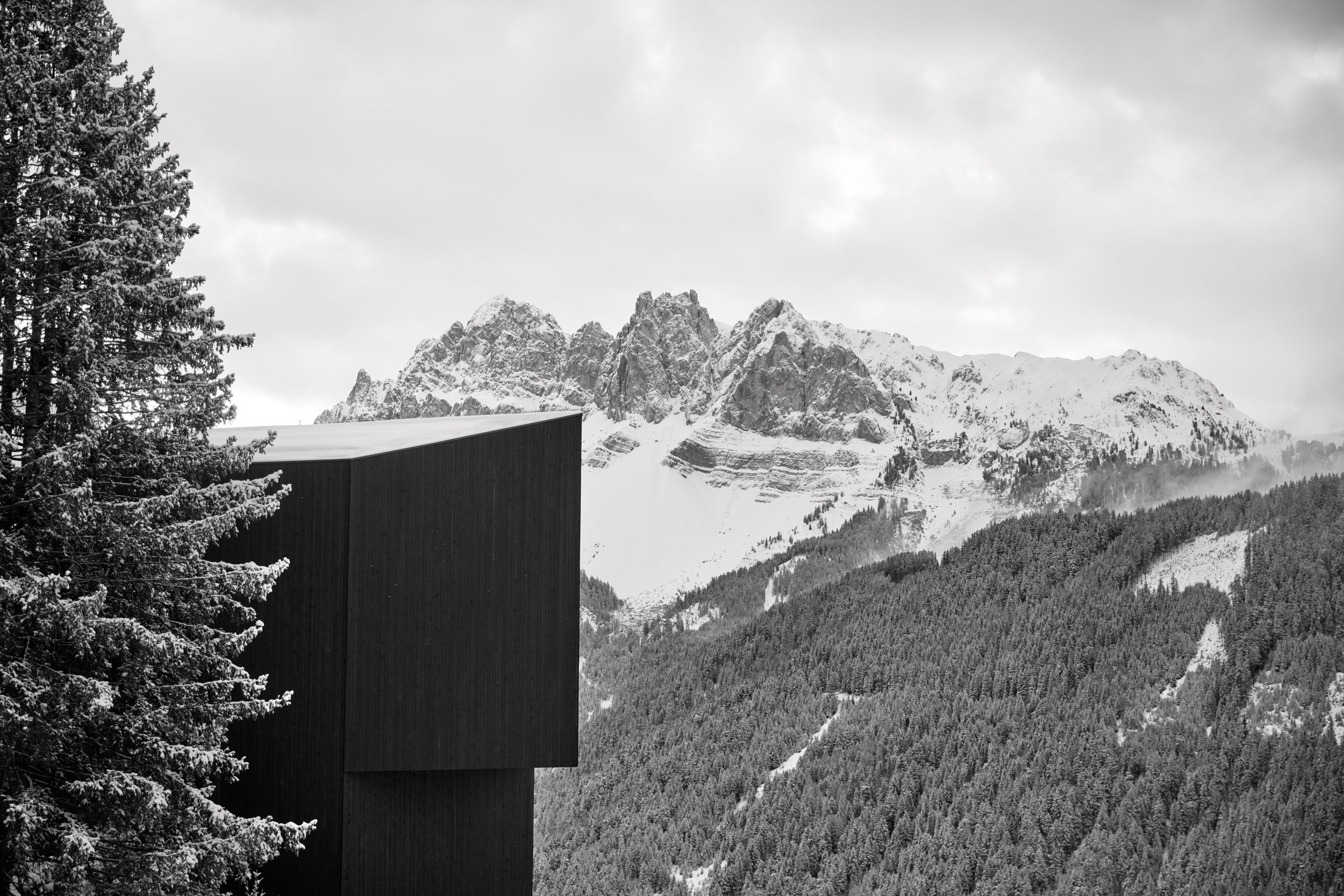 »Mitarbeiter sind die Speerspitze eines Unternehmens« Dieses Zitat inspirierte die Formgebung der neuen Staff Residence des Hideaway Forestis. Die spitz zulaufende Gebäudeform sowie das Satteldach greifen die Symbolik der Speerspitze auf, die einfache und geradlinige Gesamtgestaltung vollendet das Sinnbild eines Speers. Der lineare Stil und die Namensgebung setzen dem ehemaligen dort ansässigen Restaurant »Vallazza« ein Denkmal.